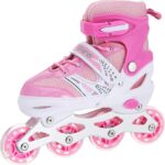 【هدية مثالية للأطفال والأولاد والبنات】أحذية التزلج المضمنة محبوبة من قبل الأطفال من جميع الأعمار، وهي ممتعة للكبار أيضًا. اترك ألعاب الفيديو والهاتف بالداخل. استمتع بساعات من المرح في الهواء الطلق