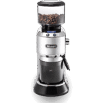 The De’Longhi Dedica KG521.M is a precise burr grinder with a clear LCD interface and 18 grind settings for espresso, drip/pour-over and French press. Fine-tune strength with the Aroma control, choose 1–14 cups via the Cup Selector, and grind straight into a portafilter or the included ground-coffee container. A 350 g bean hopper, 170 g grounds bin and a removable upper burr make daily use and cleaning effortless—backed by an international warranty.