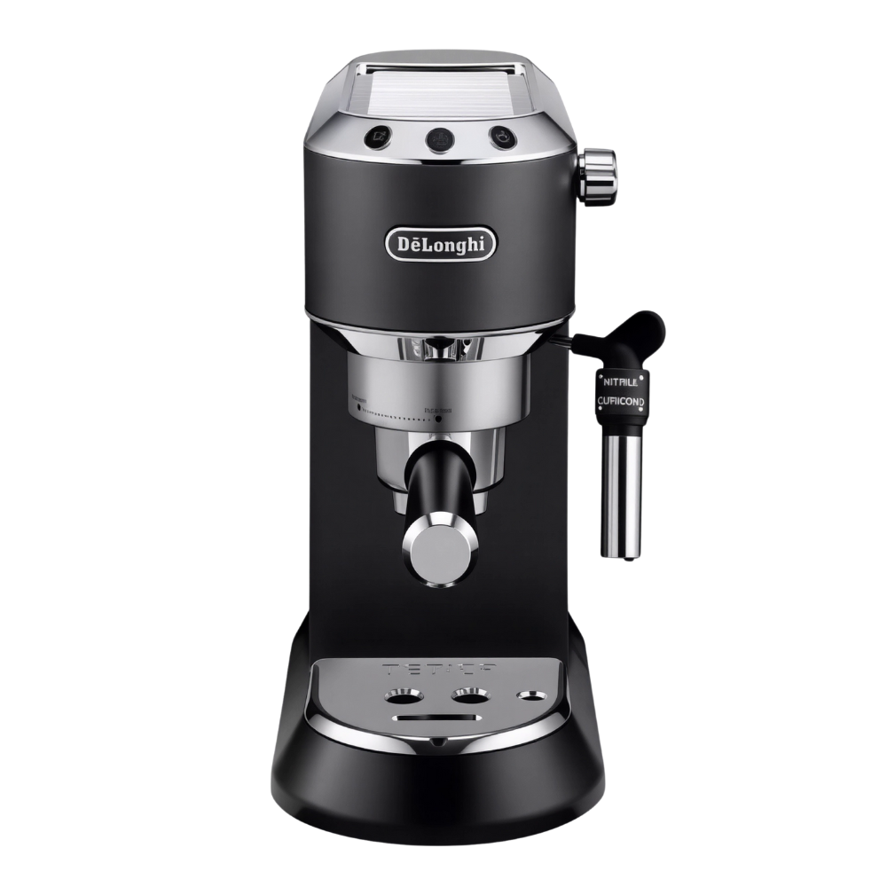 The De’Longhi Dedica EC685.M is a slim and stylish espresso machine built for serious coffee lovers who want quality in a compact form. With a professional-grade 15-bar pump pressure and 1300W power, it delivers strong, aromatic espresso in seconds. The 1.1-liter removable water tank plus a water-level indicator make refilling easy. The body is made of brushed stainless steel for durability and looks, featuring a Thermoblock heating system for fast and stable temperature control. Includes a manual milk frother for cappuccino and latte, and easily accommodates both ground coffee and ESE pods. The two-tier drip tray allows cups or glasses up to ~12 cm height. Designed with removable parts to simplify maintenance, and auto shut-off to save energy.