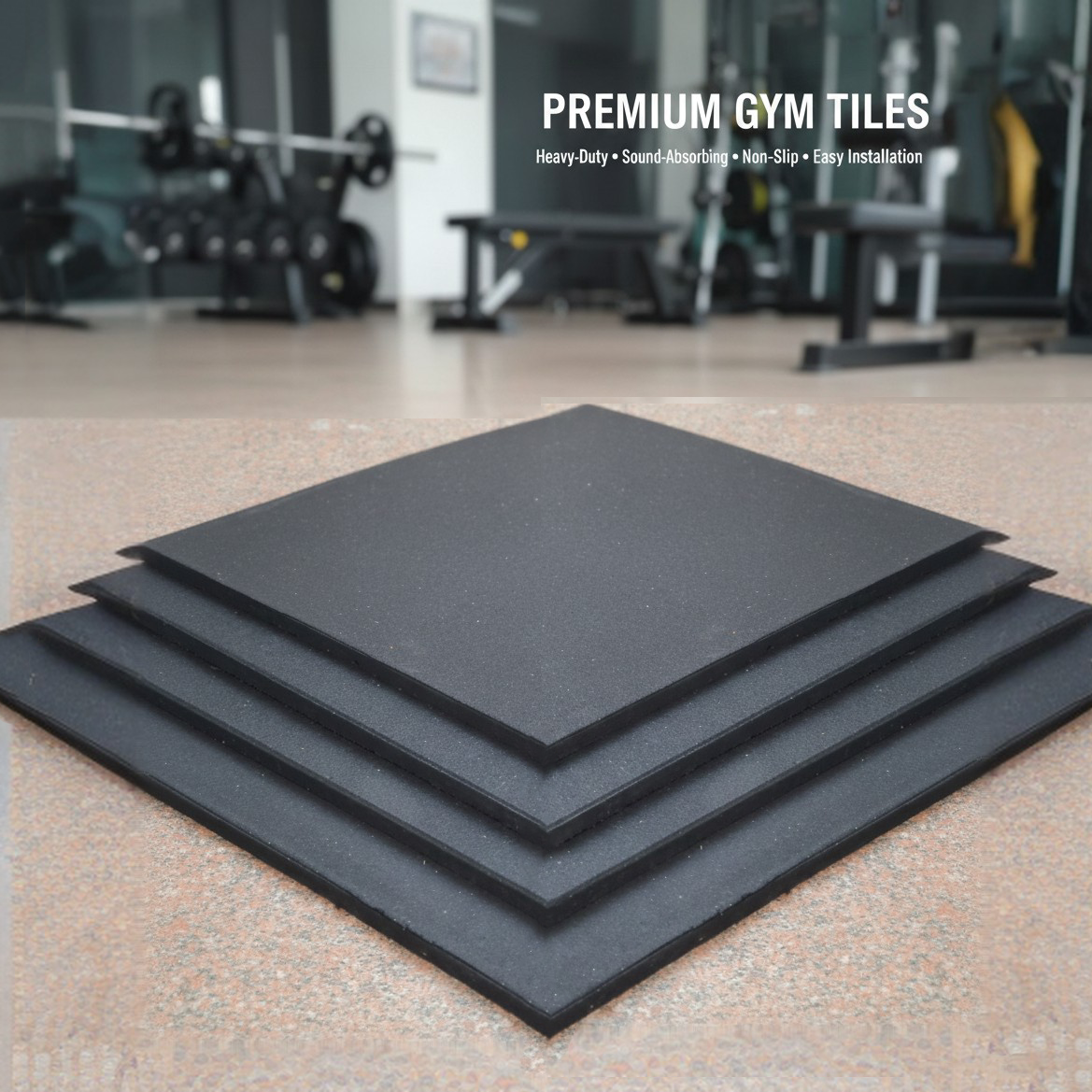 Rubber Mat, For Home & Gym Playground, Exercise Mat, Interlocking Tiles, Protective Flooring for Gym & Home Equipment and Workouts (Turkish Material)